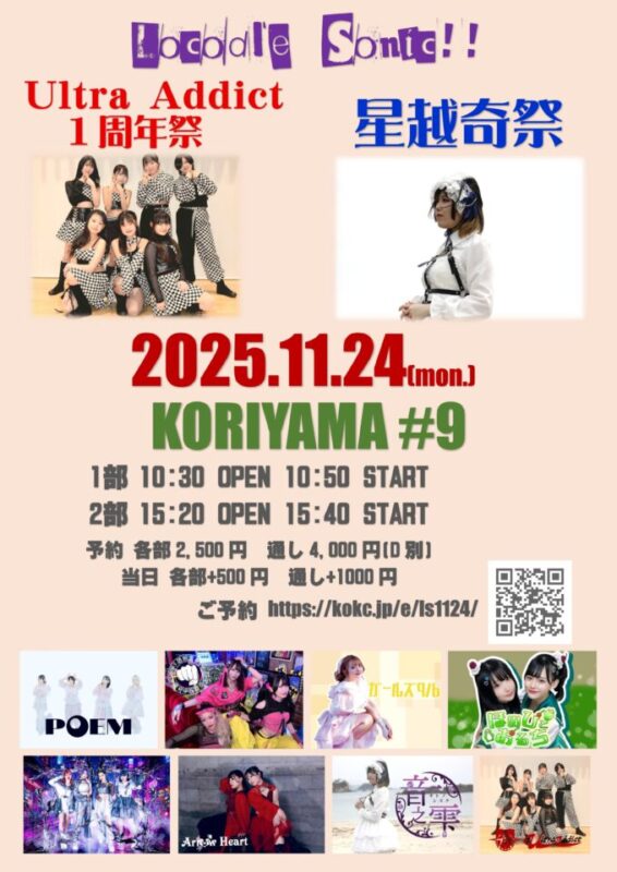 | 出演予定 | 音之雫、Ultra Addict、Arrow Heart、POEM、ガールズq/b、ほのぴとおるち、魔夜中保健室、凛々しくも臨界に咲くARTERIA(2部のみ) |