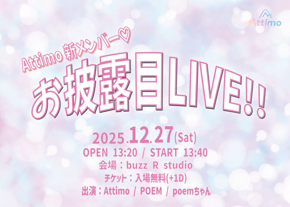 Uncategorized2025/12/27(sat)A-motion – アッティモのクリスマス – @仙台 Posted on 2025年12月12日 by POEM 12 12月 続きを読む →